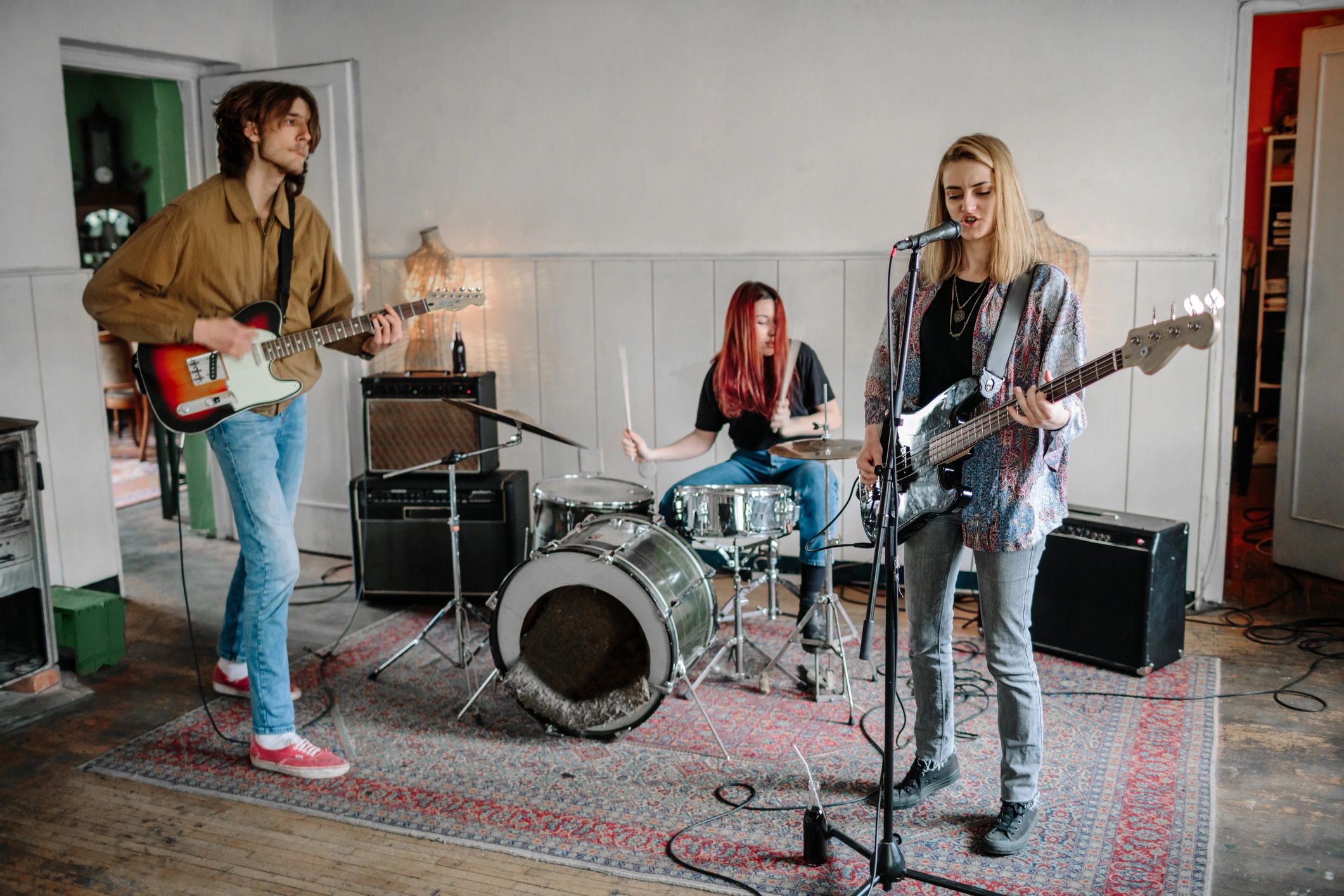 Rock Band 101 brings guitarists, drummers, pianists, vocalists, and bass players together to learn how a real band works. Students rehearse as a group, rotate parts, and perform as a team.